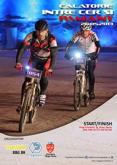La Târgu Ocna, in Piata Primariei, în ziua de 26 mai 2013 se va da startul la cel mai variat si inedit concurs de cross country din Romania! Acesta se numeste “Calatorie între Cer si Pamânt” (CCR) si dispune de un traseu de aproximativ 14 km care se desfasoara aproape jumatate în interiorul Salinei si jumatate în oras si pe dealurile si padurile învecinate. Participantii vor porni din Piata Primariei si dupa câtiva kilometri vor parcurge depozitele de sare ale Salrom. Apoi concurentii vor coborî în mina pe drumul de acces lung de 3 km si 240 m diferenta verticala de nivel. Dupa ce ajung jos ei vor parcurge înca aproximativ 1km în zona turistica dupa care vor iesi la suprafata pe acelasi drum lung de 3km. Traseul continua apoi prin padure si pe dealuri pe drumuri forestiere existente, dar si pe poteci construite de organizator special pentru concurs. Regula „jocului” este ca cei mai buni biciclisti vor parcurge acest traseu de 4 ori. Dupa ce primii trec linia de sosire a 4a oara concursul se încheie, iar ceilalti participanti care ajung la finis sunt opriti indiferent câte ture au facut. În acest mod se va realiza departajarea si clasamentul final. Ineditul cursei de cross country de la Târgu Ocna consta în faptul ca aceasta este singura cursa de mountain bike care combina atâtea zone de concurs si suprafete de rulare. Concurentii vor parcurge asfaltul din oras, piatra cubica de pe drumurile secundare, podeaua din depozitele de sare, betonul din tunelul de acces în mina, sarea din mina si, nu în ultimul rând, pamântul si pietrisul din padure. Toata aceasta varietate contribuie la atractivitatea concursului si va face deliciul participantilor acestia fiind provocati sa se adapteze de fiecare data: la caldura sau ploaia de afara, la temperatura constanta de 12 grade din mina, la adapostul si crepusculul din depozite. O alta parte inedita pe care CCP o are este fondul de premiere. Este cunoscut faptul ca desi bicicleta si concursurile de ciclism au devenit foarte populare în ultimii 4-5 ani, premiile acordate la aceste evenimente sunt în general simbolice. TransAlpin Bike împreuna cu Primaria Târgu Ocna si Salrom vor pune însa la dispozitia concurentilor un fond de premiere de peste 7.000 lei rasplatindu-i pe cei mai buni 21 de concurenti la tot atâtea categorii de concurs.