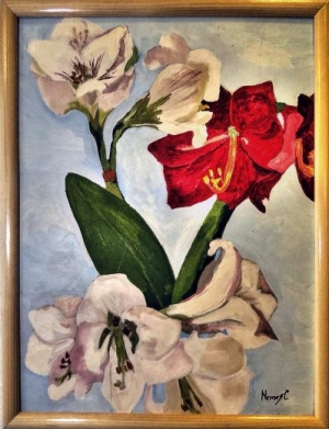 Artista isi transpune preferintele in albul pur al seriei de trandafiri, in sfiosii ghiocei, flori cu plasament bine gandit pe fondul verde inchis al padurii. In tablouri evoluand nuantat de la portocaliu la rosu, flori-cerberi transfigureaza batalia dintre rosu si negru, flori-cavaleri cu gesturi curtenitoare, suavul crin trezit duios din vis, floarea soarelui coborata cu astrul ei orbitor din panzele lui Vincent van Gogh cu mesaj de prietenie si speranta, flancata de banale tartacute dar cu sens subtil, frezia in toata gingasia ei se contopesc sublim in viu spectacol. Un camp de maci arzand in rosu pe o impletire policroma persuasiva s-ar pierde-n cer de n-ar fi rezonabil delimitat de cativa arbori protectori. Magnolia vina cu o inundatie de roz, caci nu doar petalele ii dau culoare ci si ambientul similar cromatic de parca planta ar umple spatiul cu inefabila ei respirare. Apar si flori exotice precum amarylis, combinatie insolita de culori cu tenta aproape agresiva. Liliacul irupand artezian, crizanteme asociate cu contemporanele lor gutui, pe scurt, “gradina” poetului D. Anghel sau incantatiile vivaldiene transpuse in registru plastic. Cateva tablouri cu “natura moarta” afiseaza o buna stapanire a umbrelor, de unde senzatia holografica,