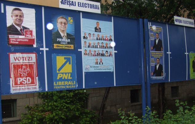 inca mai exista la ora 10 afise electorale cu candidati la liceul Dimitrie Cantemir, pe gardul stadionului.