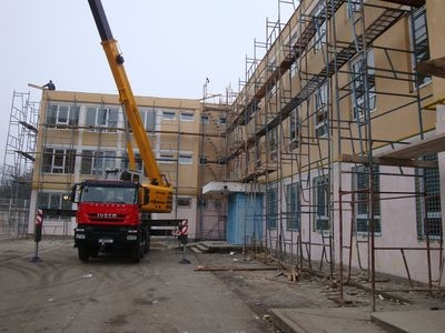 s-au mai tinut, copiii au fost inghesuiti in clasele de la parter si etajul I, intreaga activitate scolara din unitatea de invatamant a fost data total peste cap. Acum, scoala e doar un morman de fiare si schele, in mijlocul terenului de sport troneaza o ditamai macaraua, geamurile sunt montate fara finisaje, peretii sunt crapati, pe holuri e praf si multa mizerie.